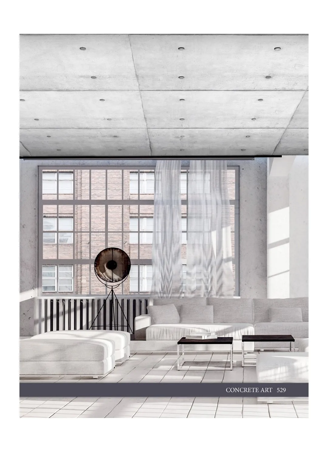 Натяжные потолки с имитацией бетона гармонируют с интерьерами, оформленными в стилях дизайна:
