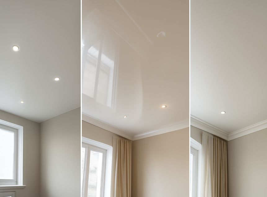 • Глянцевая— натяжной потолок из ПВХ с идеально гладкой зеркальной поверхностью.
