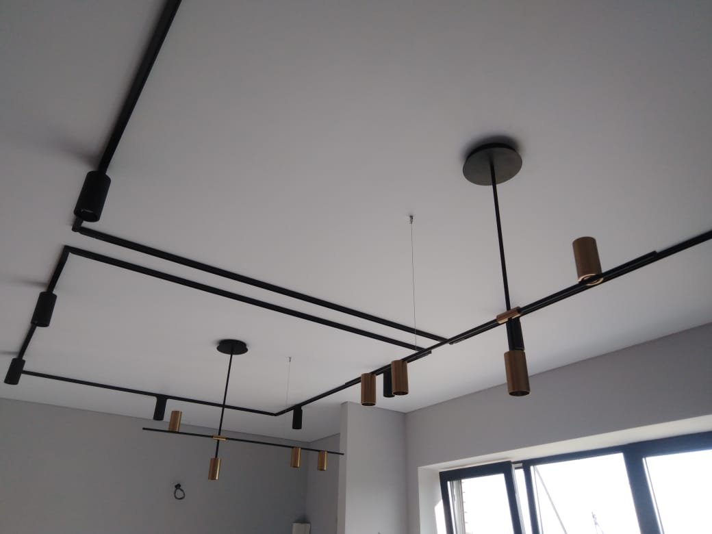 На стоимость установки дополнительно влияет тип освещения — люстры, точечные светильники, световые линии, светодиодная подсветка. Это требует крепления закладных и использования специального профиля. Трековое освещение будет дороже установки светильников. И чем больше спотов, тем выше цена.