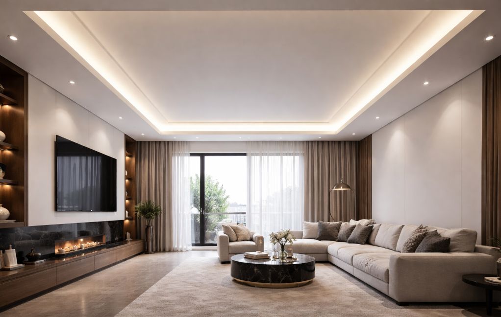Современный натяжной потолок с освещением — это не просто источник света, а мощный инструмент для трансформации пространства. Световые натяжные потолки стали стандартом благодаря интеграции светодиодных технологий, которые абсолютно безопасны для ПВХ- и тканевых полотен. Правильно спроектированное потолочное освещение позволяет эффективно зонировать помещение: общее освещение на потолке заливает светом всю комнату, а акцентные светильники выделяют функциональные зоны — отдыха, работы или обеденную группу.