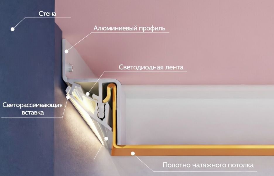 Принцип работы контурной подсветки для создания эффекта "парящего" потолка.
