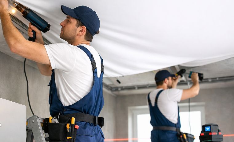 Натяжных потолков (особенно теневых и парящих), многоуровневых конструкций, интегрированной подсветки, помещений с нестандартной геометрией (эркеры, скосы, большое количество углов). Монтаж натяжного потолка требует специального оборудования — тепловой пушки, точных замеров, опыта работы с гарпунной системой и установкой закладных. Профессиональная бригада выполняет работу быстрее, даёт гарантию на материалы и монтаж, минимизирует риски ошибок.