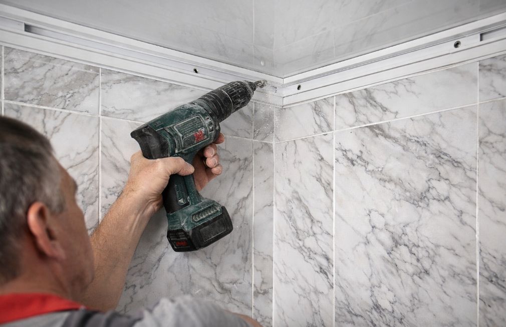 Совет специалиста: никогда не крепите профиль по самому краю плитки — опуститесь хотя бы на 10–15 мм ниже. Это снизит риск трещин и сколов керамики.