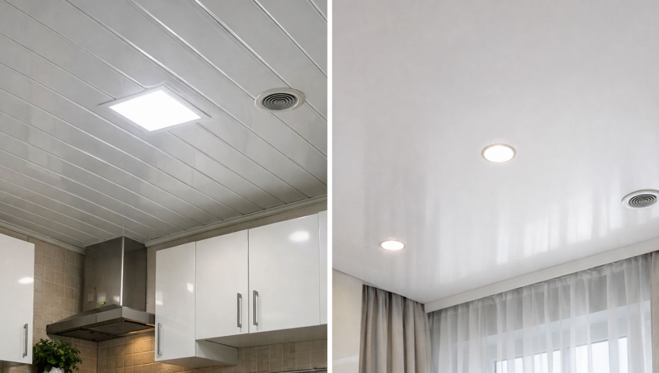Для влажных помещений оба варианта работают, но натяжной ПВХ выдержит затопление. Вывод: что выбрать — решайте по приоритетам стоимости, внешнего вида и обслуживания; оптимально — сочетать решения по комнатам.